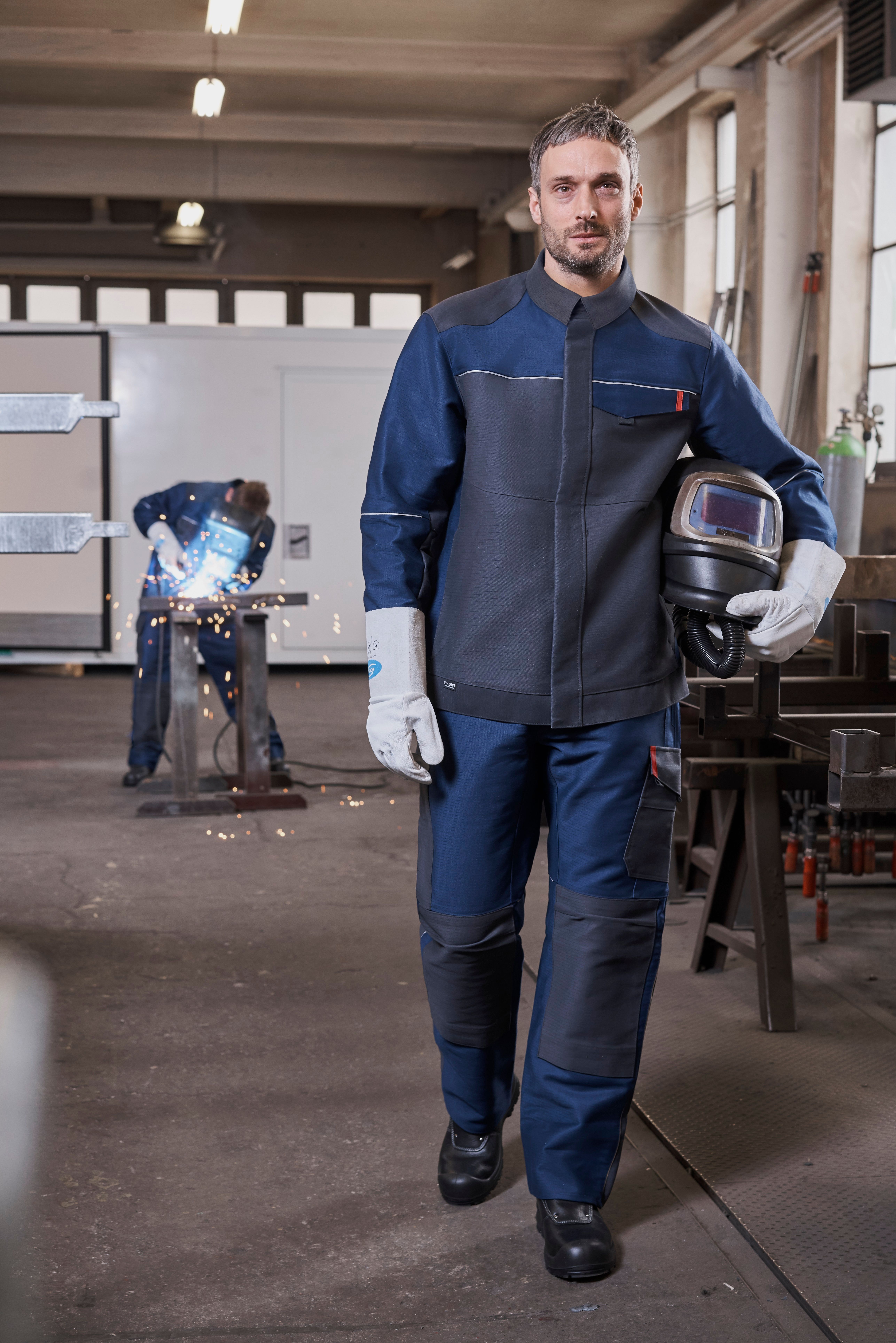 Les vêtements de protection sont encore trop souvent laissés au placard - malgré l'estimation claire des risques. La raison en est le faible niveau d'acceptation parmi les travailleurs. Les raisons de refus les plus fréquemment invoquées sont le poids plus élevé, la gêne lors de l'exécution des activités et le manque de confort, tant pour les porter que pour les enfiler, car mettre ces vêtements demande plus d'efforts. La fonctionnalité et l'apparence, en revanche, ont moins d'influence sur l'acceptation. Il est donc important de proposer des vêtements de protection qui soient si confortables à porter qu'ils s'utilisent tout aussi naturellement que les vêtements de travail normaux. MEWA a donc développé la ligne Dynamic, qui se caractérise par une liberté de mouvement maximale et un grand confort à porter. MEWA Dynamic Flame convient aux soudeurs et autres personnes qui entrent en contact avec la chaleur et les flammes. Elle est disponible en trois versions, car une personne qui soude occasionnellement a besoin d'un équipement différent de celui d'une personne qui soude en permanence.